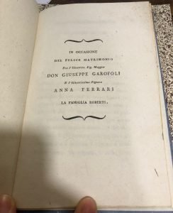 IN OCCASIONE DEL FELICE MATRIMONIO FRA … GIUSEPPE GAROFOLI E . ANNA FERRARI