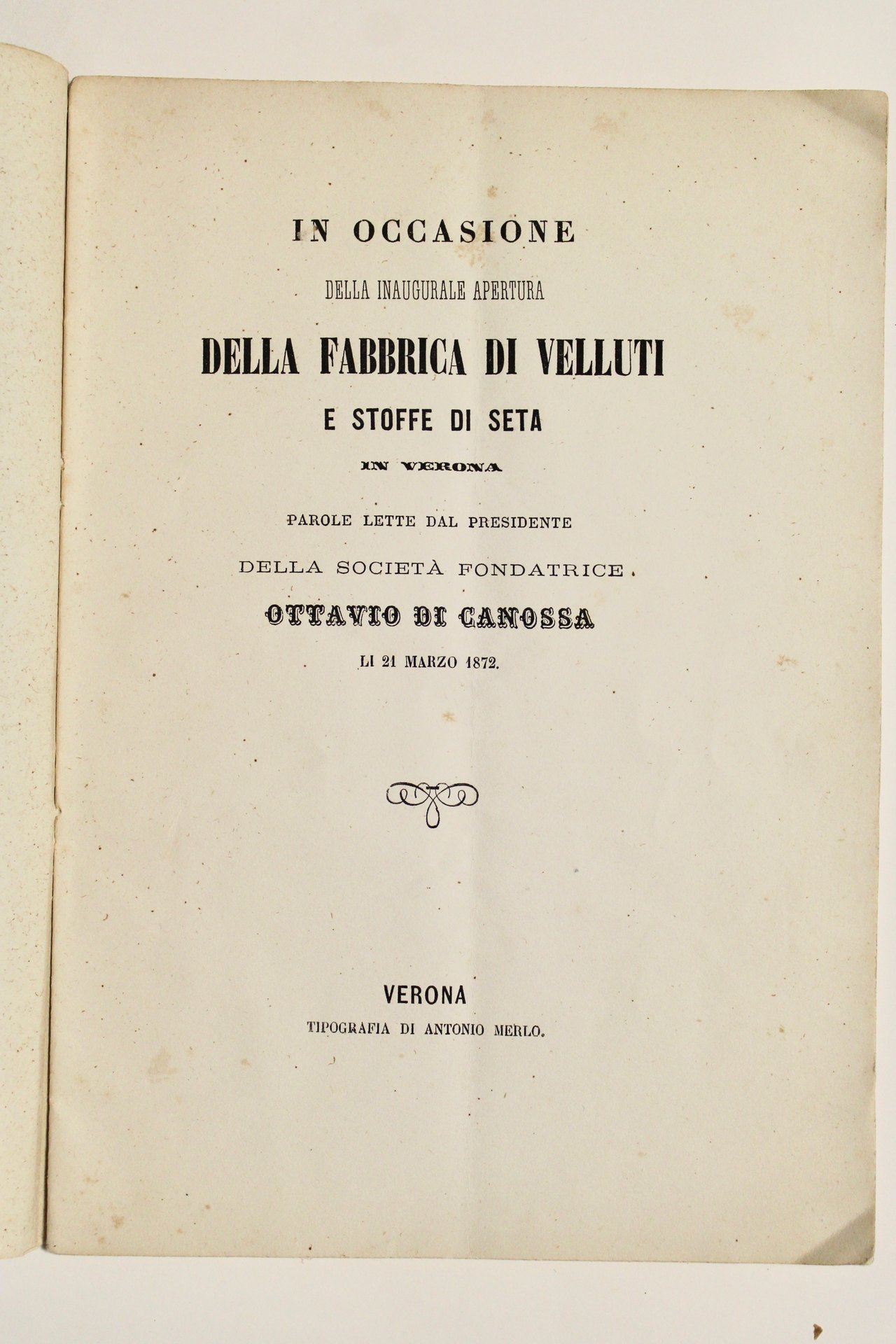 In occasione della inaugurale apertura della fabbrica di velluti e stoffe di seta in Verona…