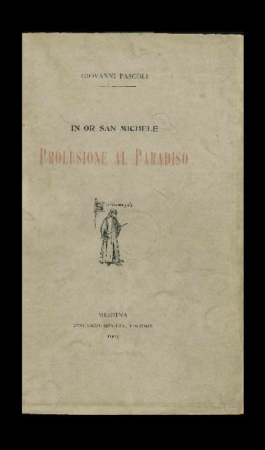 LIBROEdizione originale.Esemplare discreto, con dorso fessurato e fragile.La «Prolusione» dantesca, letta il 4 dicembre del 1902 a Firenze, fu stampata per la prima volta nell’opuscolo qui presentato, dedicato «a una donna gentile»: si tratta di Emma Corcos, moglie del pittore fiorentino Vittorio Corcos, con la quale Pascoli intrattenne un lunghissimo rapporto epistolare, senza mai conoscerla di persona. La “Lettura dantesca” si rivelò un fallimento: lunga, lenta e faticosa, indusse gran parte degli ascoltatori ad andarsene prima della fine, e ci fu anche, tra i cronisti, chi arrivò a scrivere: «Quest’anno aperse indegnamente la serie delle Letture Giovanni Pascoli, una delle ultime vittime di Dante». Il poeta ne fu molto addolorato: se, dunque, stampò la «Prolusione» così come l’aveva letta, introdusse però nell’opuscolo «la novità amaramente accorata [della] bella e commossa ‘Prefazione’» (Pascoli, «Prose - Scritti Danteschi», ed. Vicinelli, pp. XLII-XLIII; cfr. anche Pascoli, «Poesie e prose», ed. Garboli, p. 621). La «Prolusione», provvista della «Prefazione», fu poi ristampata per le cure di Maria Pascoli nel 1915 nel volume «Conferenze e studi danteschi», Zanichelli, Bologna, 1915. Il presente esemplare conserva la pecetta “Zanichelli” applicata al frontespizio ad alcune copie della tiratura: Zanichelli acquisì infatti, di lì a poco, la casa editrice di Muglia, e modificò dunque le copie non ancora vendute. «Non comune e piuttosto ricercato» (Gambetti - Vezzosi, Rarità, p. 643).Pascoli, «Prose - Scritti Danteschi», ed. Vicinelli, pp. XLII-XLIII; Pascoli, «Poesie e prose», ed. Garboli, pp. 621-2. Gambetti - Vezzosi, «Rarità bibliografiche», p. 643.