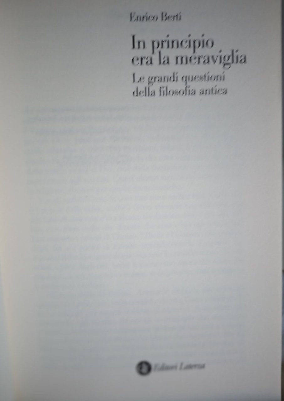 In principio era la meraviglia -l e grandi questioni della filosofia antica