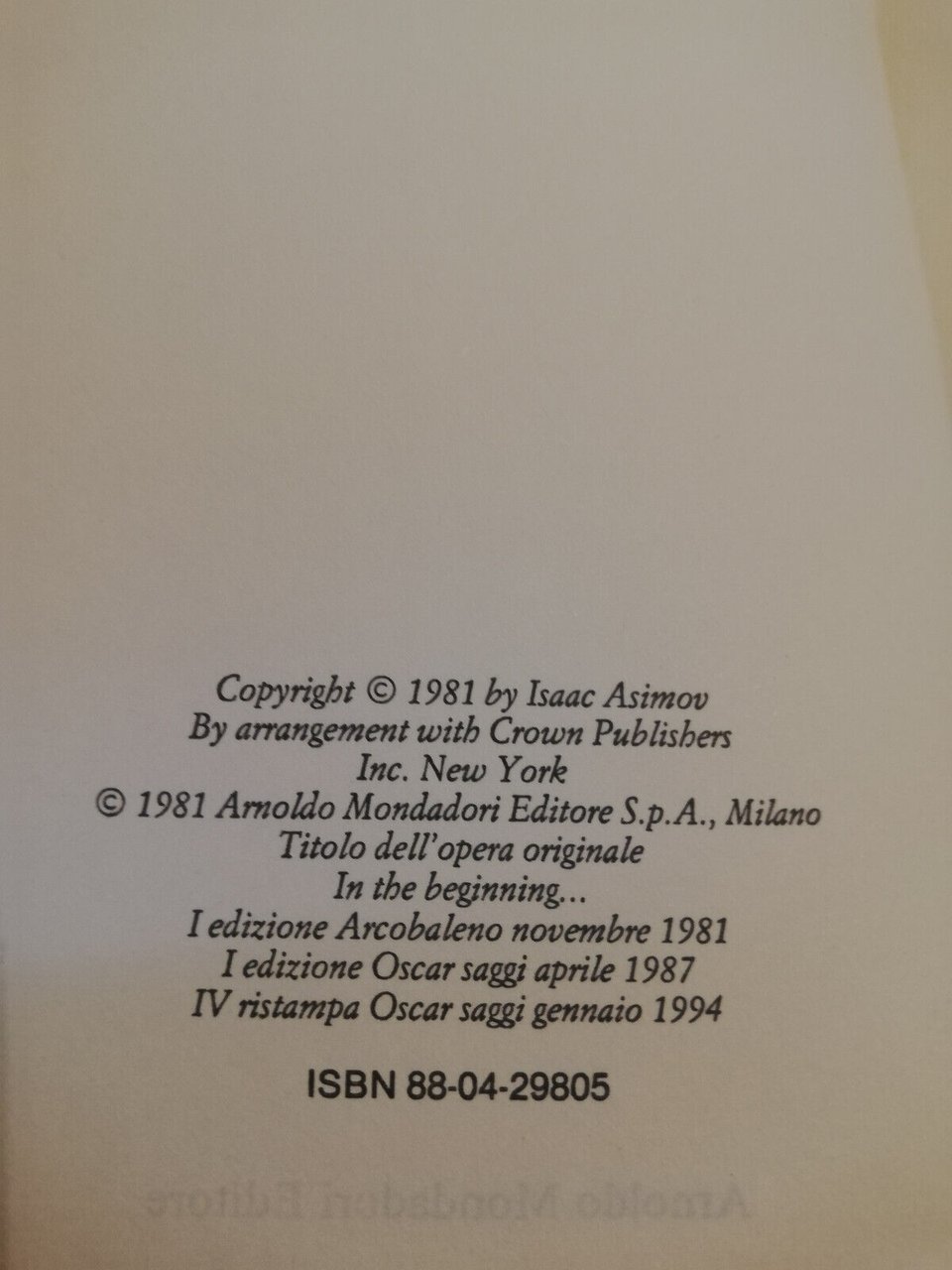 In principio. Il libro della Genesi interpretato, Isaac Asimov, 1994, Mondadori