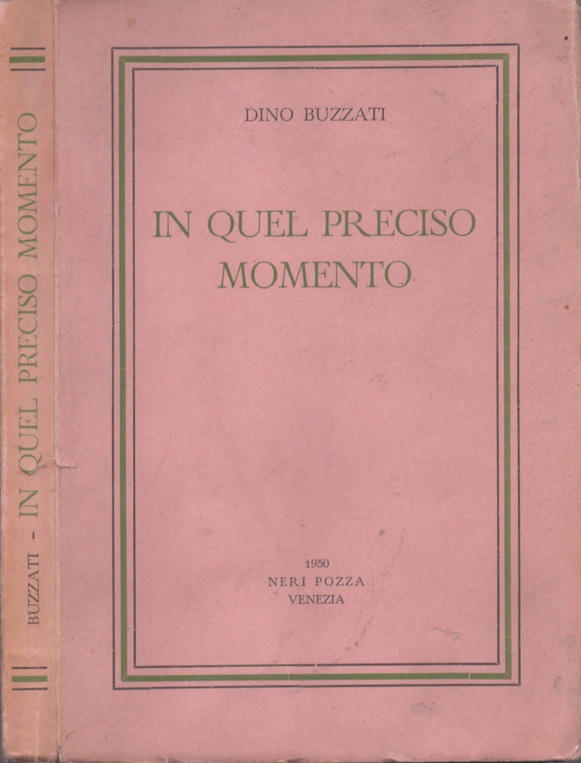 "In quel preciso momento" è una raccolta di testi brevi (racconti, riflessioni, appunti) di Dino Buzzati, pubblicata per la prima volta nel 1950 dall'editore Neri Pozza e poi ripubblicata da Mondadori in edizioni successive. Il volume raccoglie le "scintille" del genio di Buzzati, condensando temi come la fuga del tempo e la visione magica del quotidiano, attraverso uno stile che trasforma la vita in diario intimo e riflessione personale