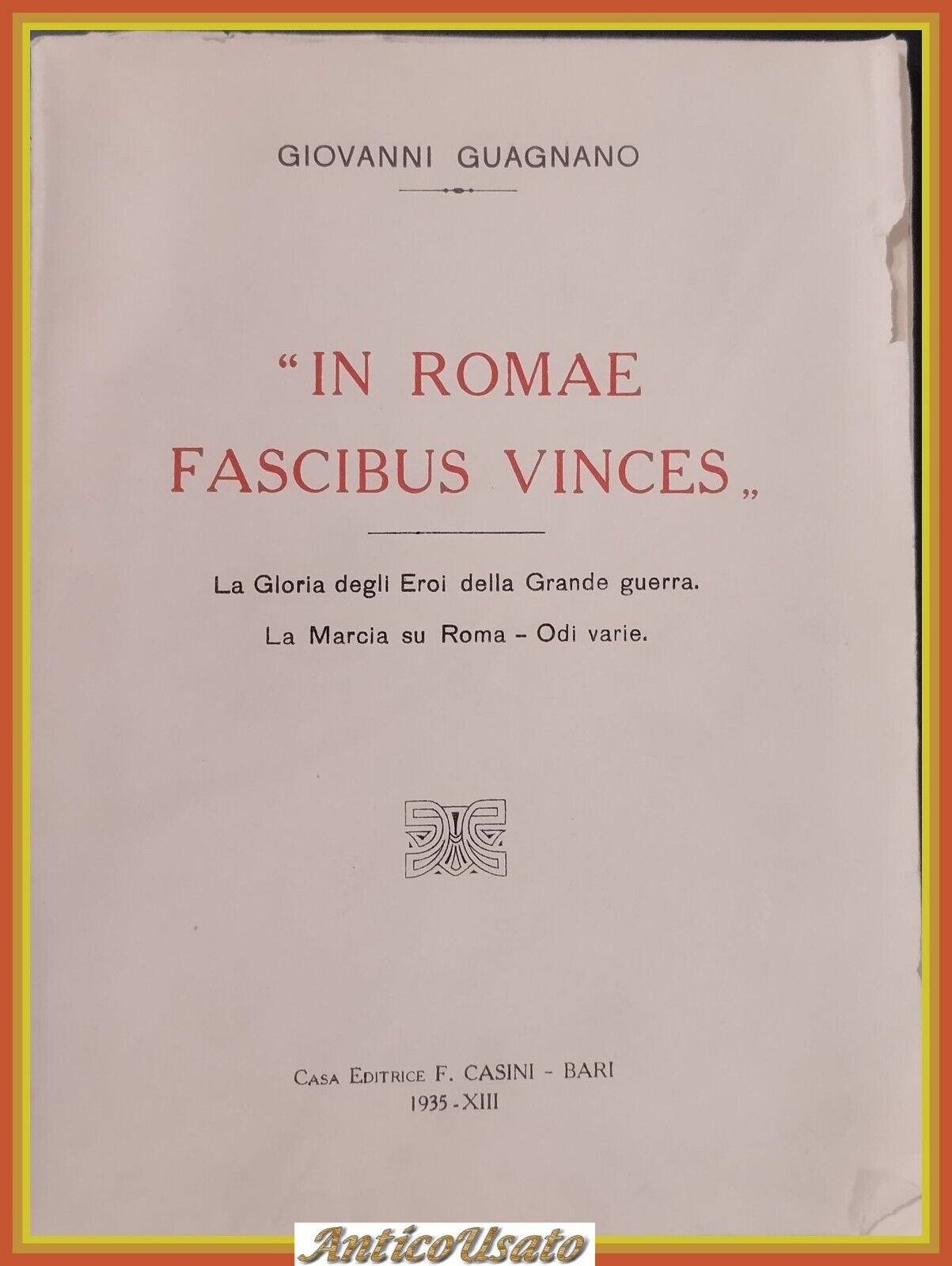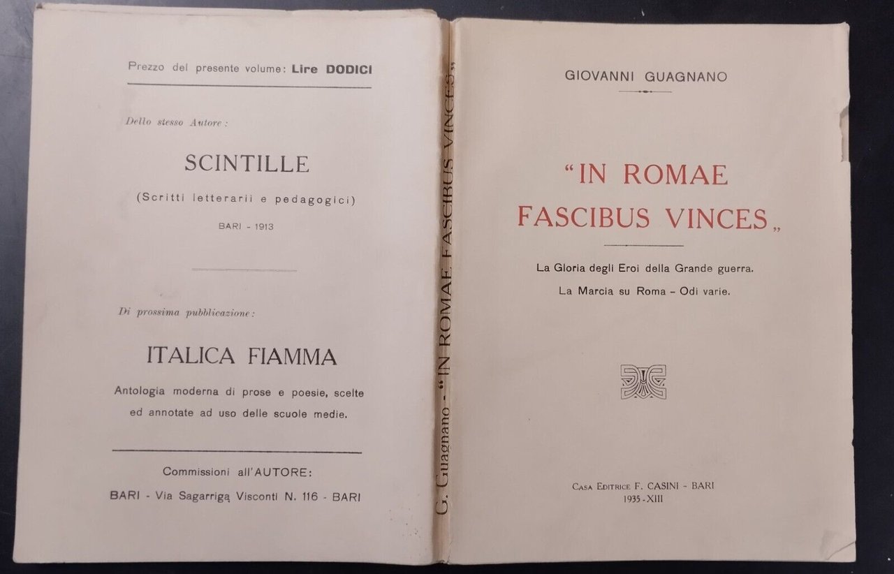 IN ROMAE FASCIBUS VINCES di Giovanni Guagnano 1935 Casini Libro fascismo Marcia
