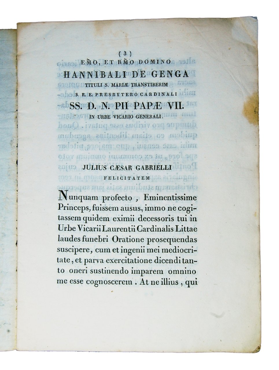 In solemnibus parentalibus Laurentii Litta episcopi Sabini . celebratis a v. collegio parochorum in eorum aede ss. Salvatoris ad Cupellas Oratio Julii Caesaris Gabrielli [.].
