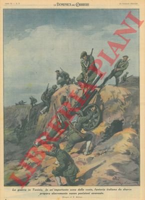 In Tunisia, in un'importante zona della costa, fanteria italiana da sbarco prepara alacremente nuove posizioni avanzate.