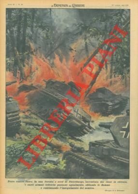 In una foresta a nord di Pietroburgo, incendiata dai russi in ritirata, i carri armati tedeschi passano ugualmente, sfidando le fiamme e continuando l'inseguimento del nemico.
