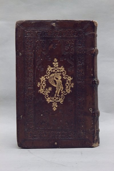 8°; 276 ll.; lightly browned. Elegant contemporary light-brown morocco (untouched), triple-fillet gilt double panel with blind-tooled floral pieces, gilt central wreath with title on frontal cover and Fortuna with a sail on rear (a few small wormholes, head and tail bands slightly rubbed). 17th-century owner’s signature “Claudii Dactyli” on rear pastedown. Excellent copy from the Novacco library (bookplate to front pastedown).