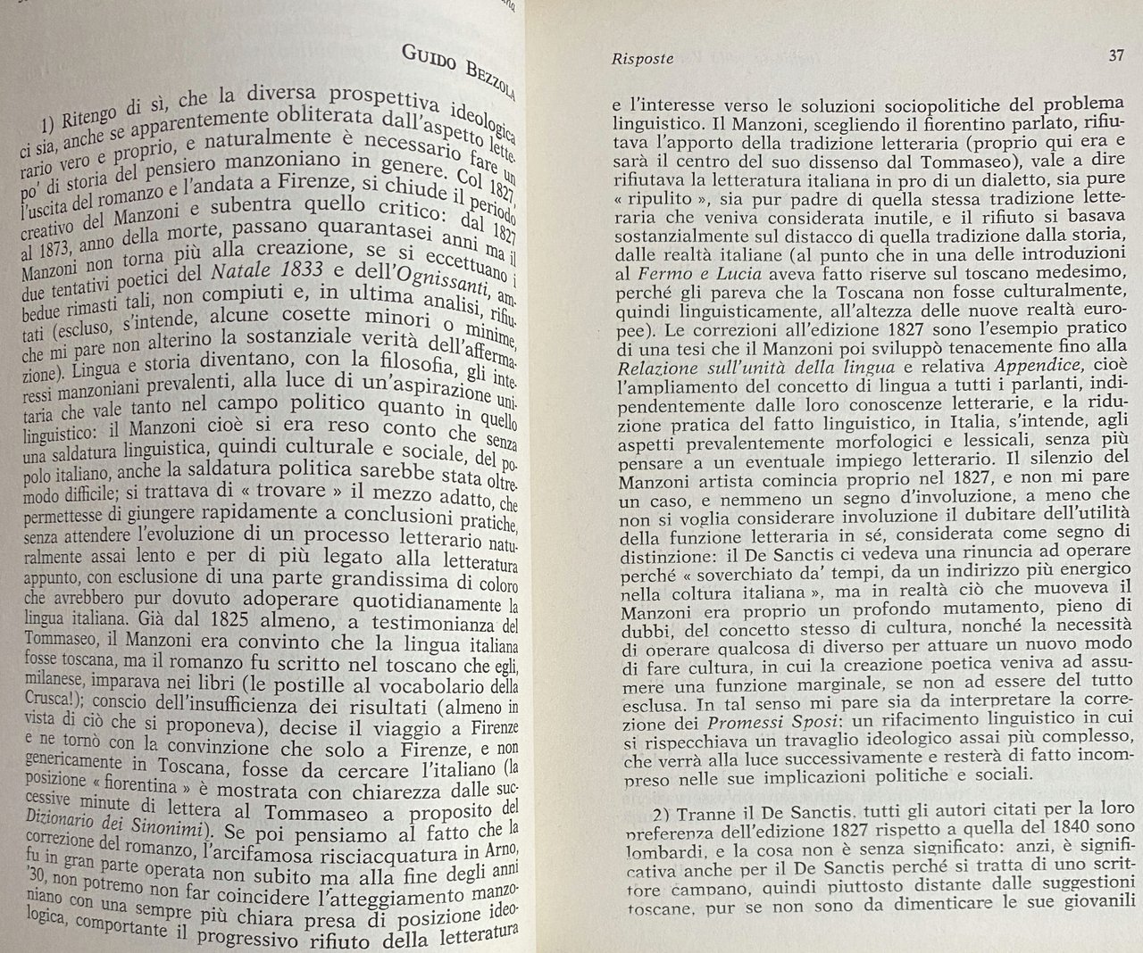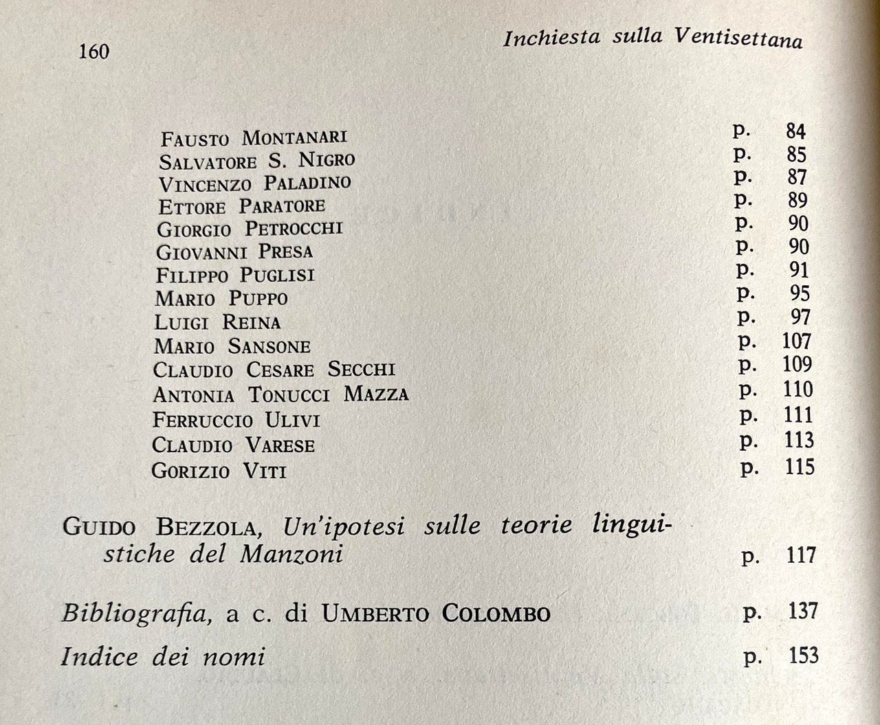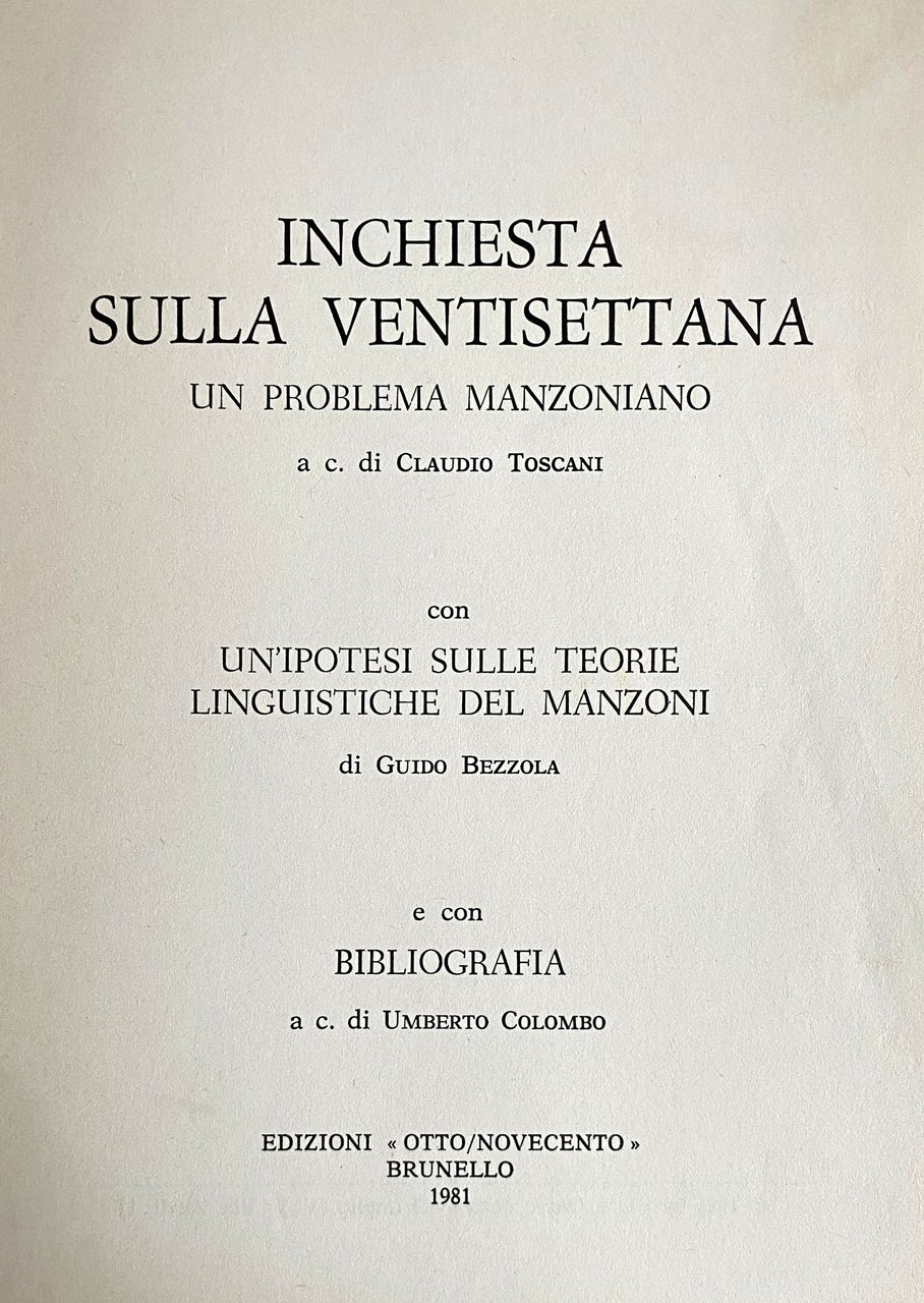 INCHIESTA SULLA VENTISETTANA: UN PROBLEMA MANZONIANO. A CURA DI CLAUDIO TOSCANI CON UN'IPOTESI SULLE TEORIE LINGUISTICHE DEL MANZONI DI GUIDO BEZZOLA E CON BIBLIOGRAFIA A C. DI UMBERTO COLOMBO