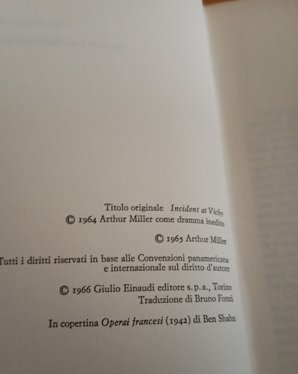 Incidente a Vichy, Arthur Miller, Einaudi Teatro, 1966