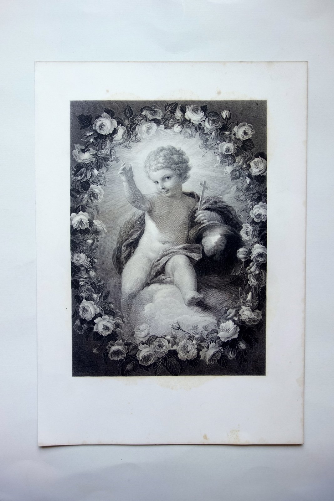 Incisione in Acciaio L'Enfant Jesus C. Baratte Met‡ Ottocento