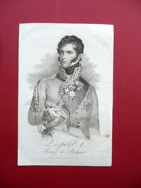 Incisione Leopoldo I Konig der Belgier Re del Belgio Carlsruhe Primo Ottocento