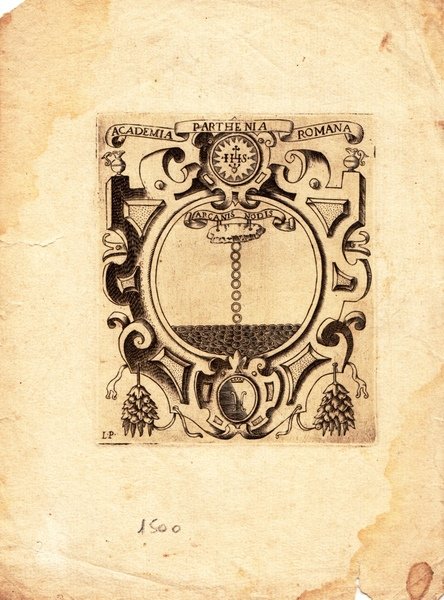 Incisione originale dell'Academia Parthenia Romana di L. P. Accademia Romana Parthenia.