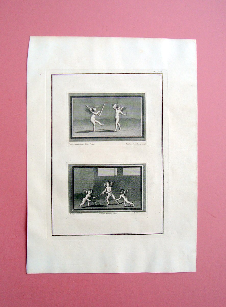 Incisione rame Napoli 1757 Tav XXXII Putti Alati che ballano Stamp.Reale