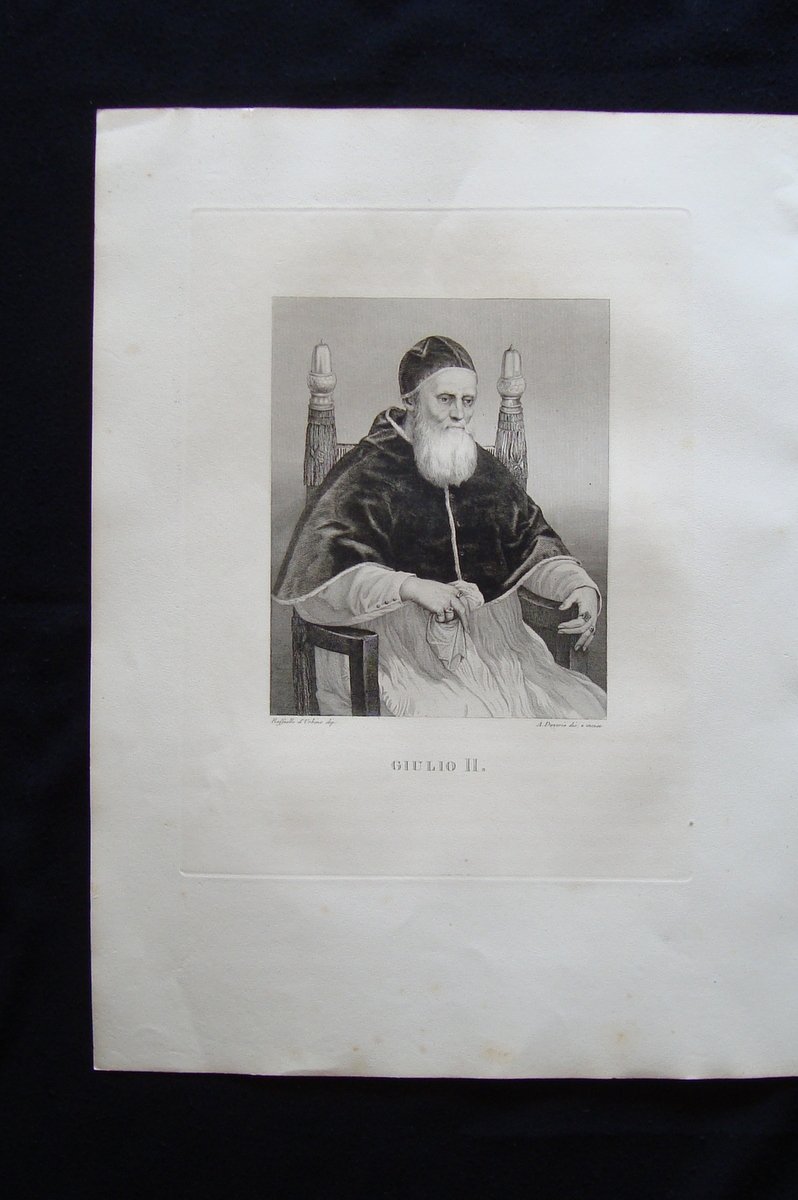 Incisione rame Papa Giulio II Raffaello Daverio Galleria Pitti Firenze 1842