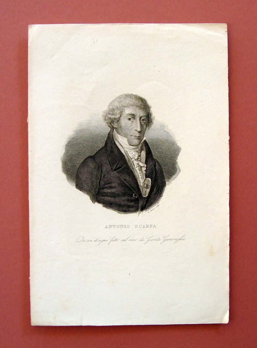 Incisione originale, Antonio Scarpa Da un disegno fatto sul vivo da Giovita Garavaglia Incisione su rame, prima metà ottocento. Dimensioni: cm 26,5x17,5. Condizioni di conservazione Ottime (vedi foto). NON TRATTIAMO RIPRODUZIONI OGGETTO ASSOLUTAMENTE ORIGINALE INC.0092 Blu