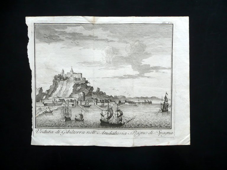 Incisione Veduta di Gibilterra Andalusia Regno di Spagna Fine '700 Primo '800