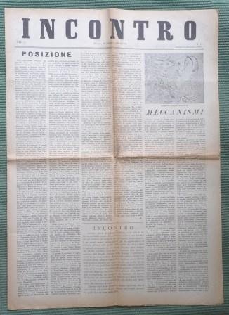 INCONTRO - ANNO PRIMO - N. 1 - FIRENZE 10 FEBBRAIO 1940 - SI PUBBLICA OGNI 15 GIORNI - (POI MENSILE DA GIUGNO 1940)