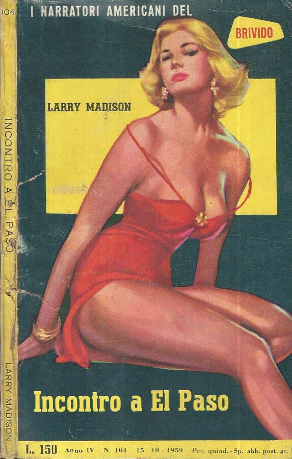 Collezione I narratori americani del brivido, Anno IV numero 104, 1959. Romanzo in brossura con copertina in carta opaca a colori in discreto stato di conservazione, dorso strappato, incerto. Pagine interne ingiallite dal tempo, legatura piuttosto salda. Lieve fioritura sparsa. Numero pagine 121.