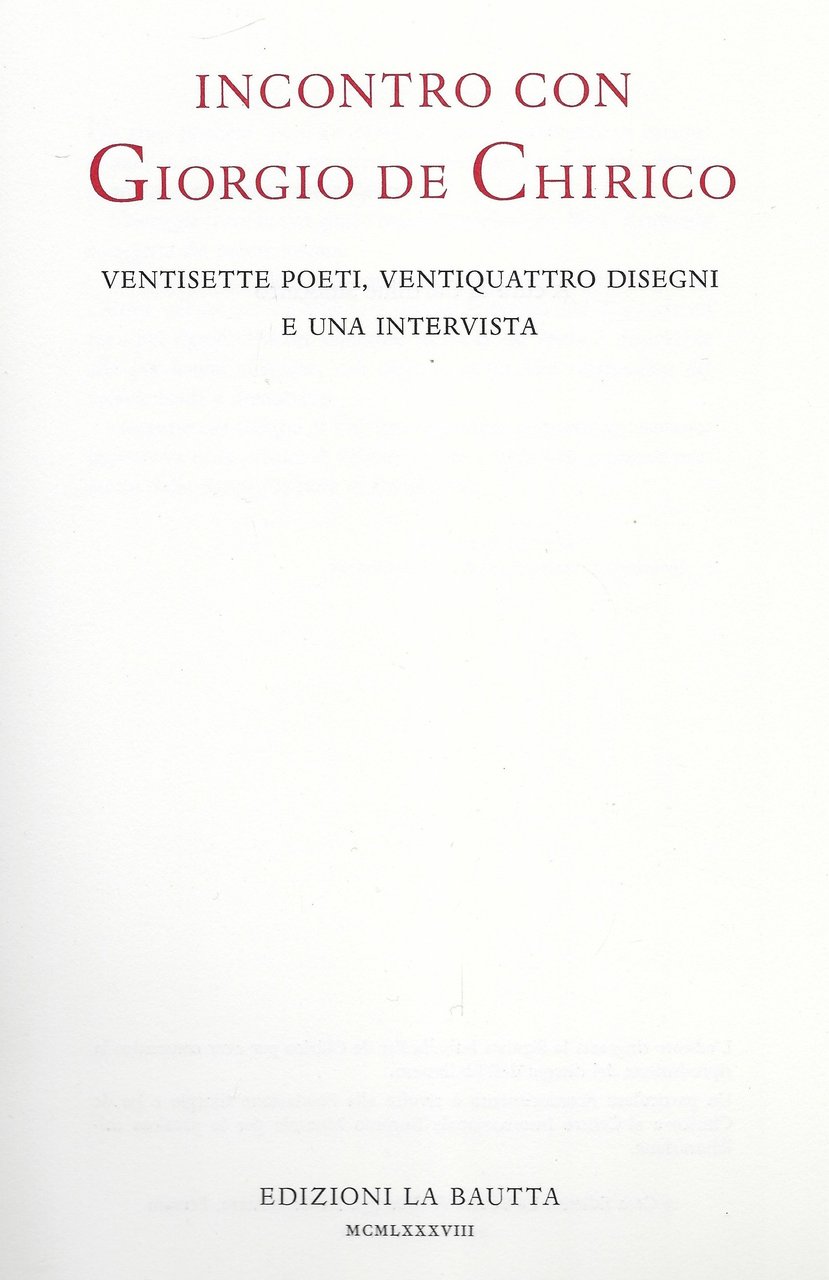 Incontro con Giorgio de Chirico. Ventisette poeti, ventiquattro disegni e una intervista.