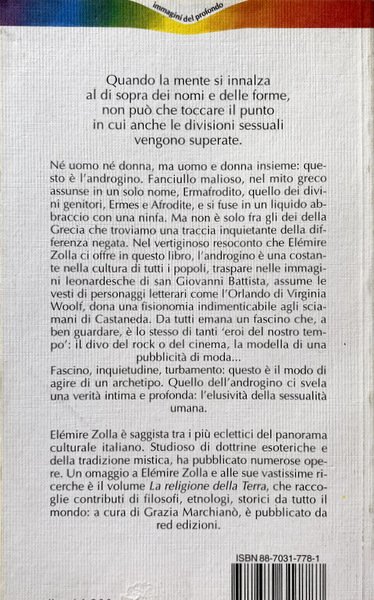 Né uomo né donna, ma uomo e donna insieme: questo è l'androgino. Fanciullo malioso, nel mito greco assunse in un solo nome, Ermafrodito, quello dei divini genitori, Ermes e Afrodite, e si fuse in un liquido abbraccio con una ninfa. Ma non è solo fra gli dei della Grecia che troviamo una traccia inquietante della differenza negata. Nel resoconto che Zolla ci offre in questo libro, l'androgino è una costante nella cultura di tutti i popoli, traspare nelle immagini leonardesche di San Giovanni Battista, assume le vesti di personaggi letterari come l'Orlando di Virginia Woolf, dona una fisionomia indimenticabile agli sciamani di Castaneda. Da tutti emana un fascino che, a ben guardare, è lo stesso dei divi rock o del cinema e delle modelle.