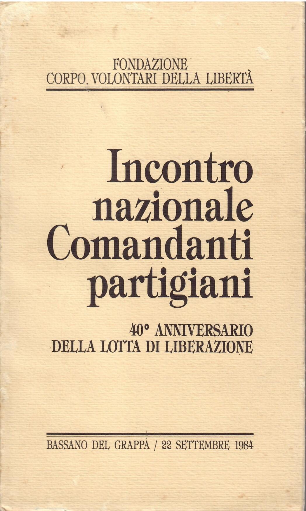 - FONDAZIONE CORPO VOLONTARI DELLA LIBERTA' - BASSANO DEL GRAPPA 22 SETTEMBRE 1984