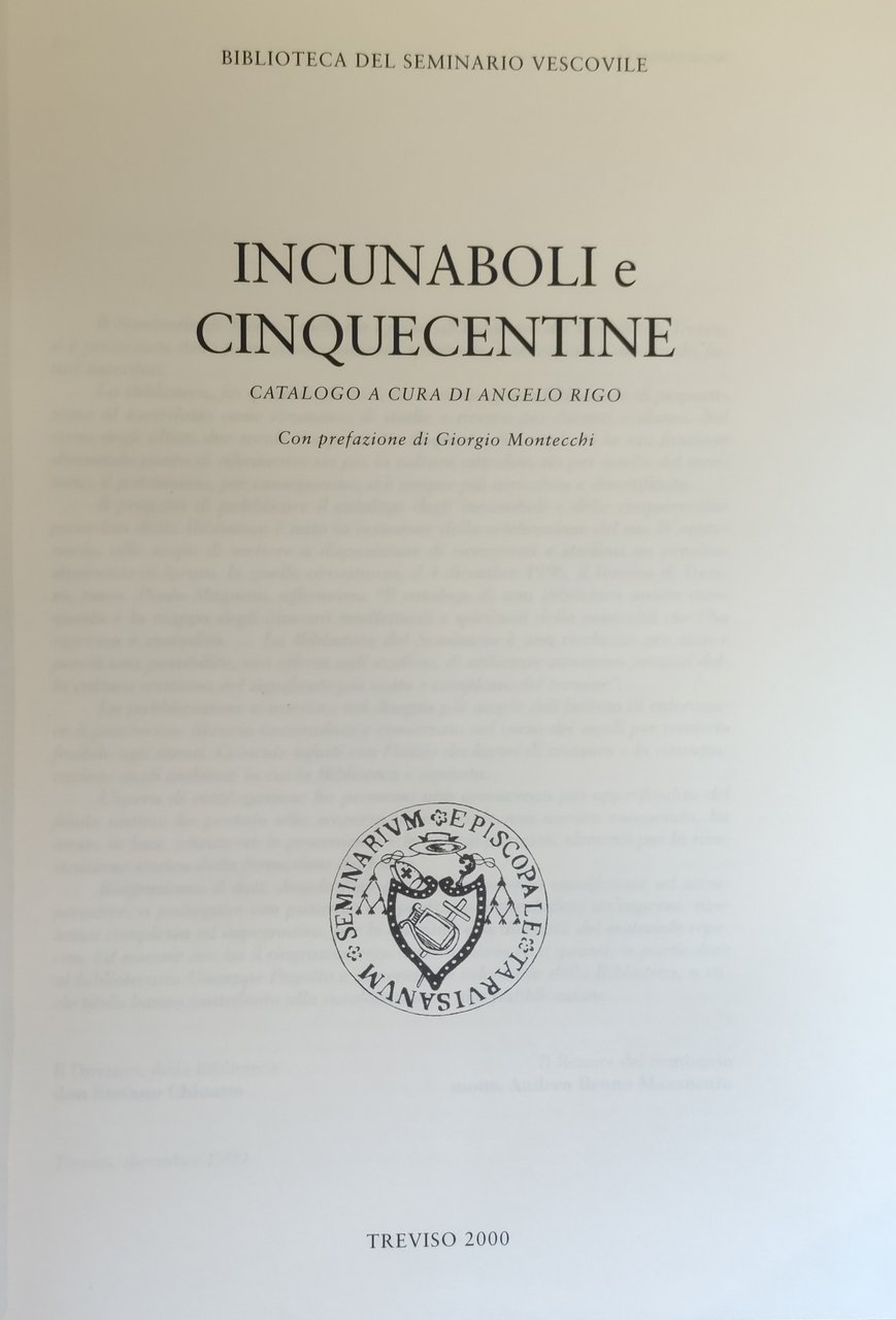 INCUNABOLI E CINQUECENTINE. CATALOGO
