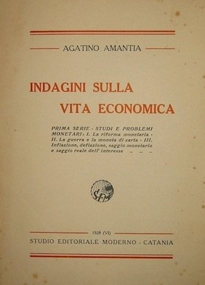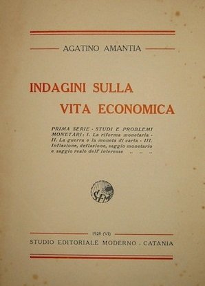 INDAGINI SULLA VITA ECONOMICA Prima serie - Studi e problemi monetari: I- La riforma monetaria - II- La guerra e la moneta di carta. - III- Inflazione, deflazione, saggio monetario e saggio reale dell'interesse