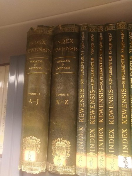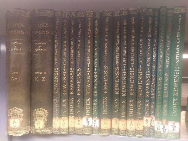 Index Kewensis. An enumeration of the genera and species of flowering plants. From the time of Linnaeus to the year 1885 inclusive together with their authors, names, the works in which they were first published, their native countries and their synonyms. Compiled at the expense of the late Charles Robert Darwin under the direction of Joseph D. Hooker by B. Daydon Jackson. Volumes I-II [AND] Index Kewensis plantarum phanerogamarum supplementum I-XVI.