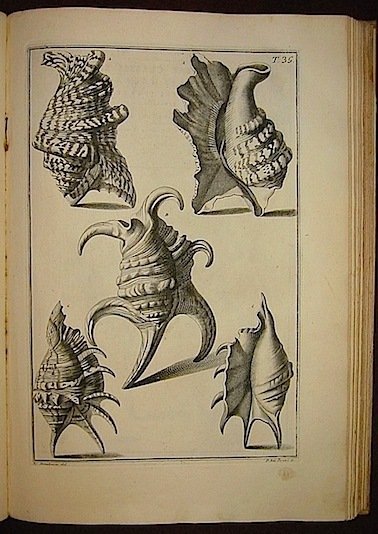 Folio (cm. 44,8), XXIV, 126 cc.nn. che contengono 110 tavole a piena pagina disegnate da Menabuoni e incise su rame da Pazzi e altre 16 grandi incisioni di raffiguranti coralli. Sia i frontespizi delle 5 parti in cui è suddivisa l’opera sia i frontespizi delle diverse sezioni sono stampati in rosso e nero e hanno una grande incisione di forma ovale o rotonda. Solida legatura coeva in piena pergamena con titolo oro su tassello in pelle al ds. Restauri alle cuffie e agli angoli e piccola mancanza al tassello. Due timbri al frontis. e alcuni lievi aloni su poche carte. Assenti l’antiporta allegorica e il ritratto dell’Autore. Nel complesso bell’esemplare su carte forte con tavole assai fresche. Prima edizione di uno dei libri italiani più importanti ed affascinanti di malacologia. Nissen, ZBI 1736.