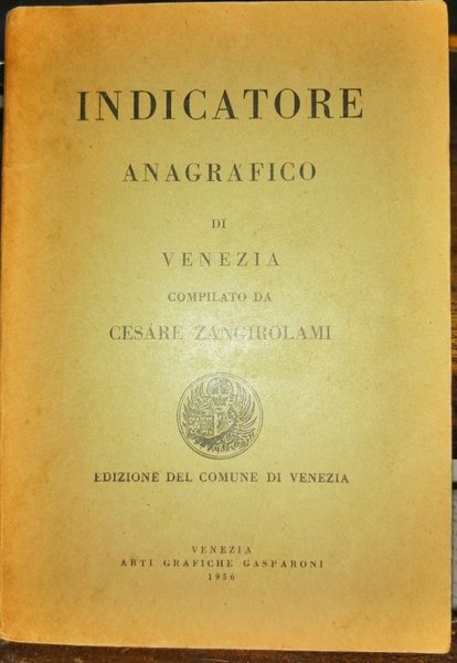 Indicatore anagrafico di Venezia compilato da Cesare Zangirolami. Edizione del Comune di Venezia