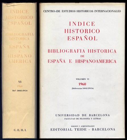 Índice Histórico Español. Bibliografía Histórica de España e Iberoamérica. Director: Juan Vernet. Volumen VI: 1960.
