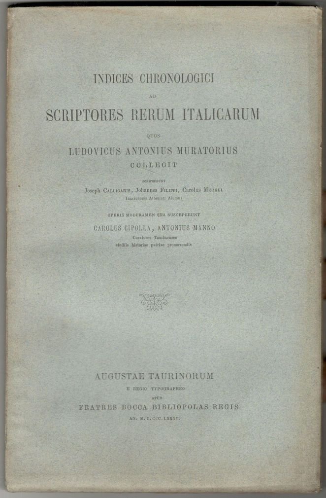 Indices chronologici ad Scriptores Rerum Italicarum quos Ludovicus Antonius Muratorius collegit. Scripserunt Joseph Calligaris, Johannes Filippi, Carolus Merkel, Taurinensis Athenaei alumni