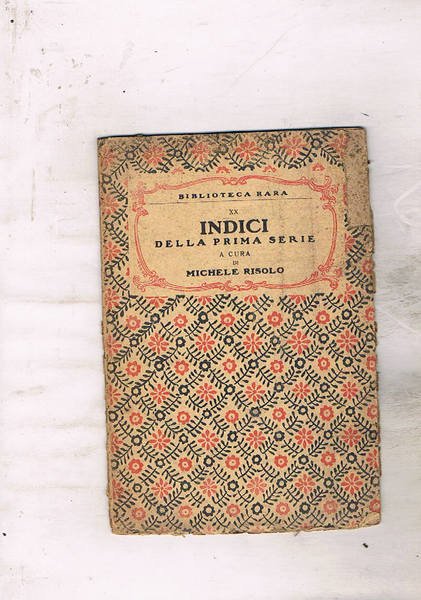 Indici della prima serie. Contiene indice dei nomi, degli autori, delle materie. Collana Biblioteca rara.