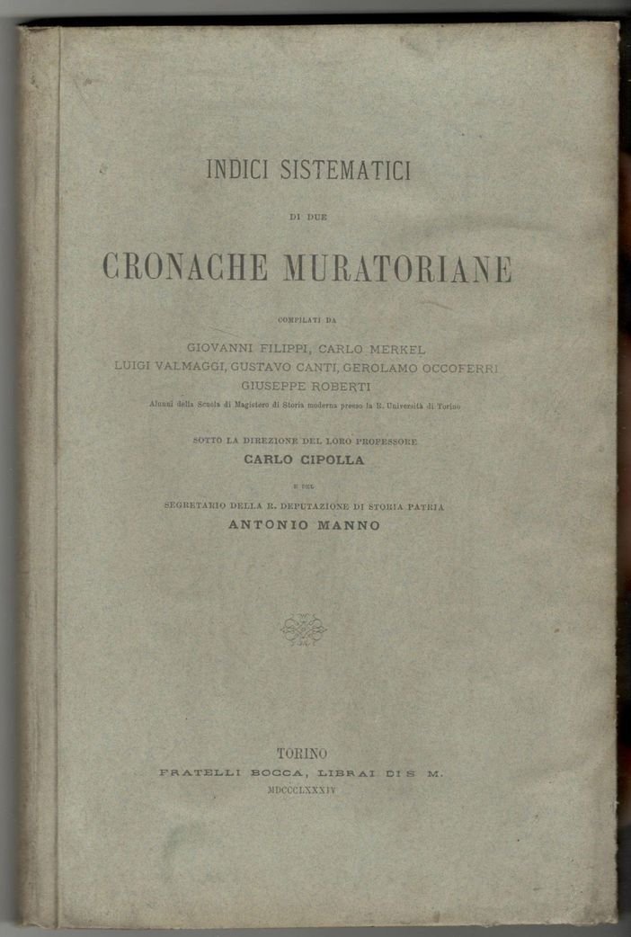 Indici sistematici di due cronache muratoriane. Compilati da G. Filippi, C. Merkel, L. Valmaggi, G. Canti, G. Occoferri, G. Roberti