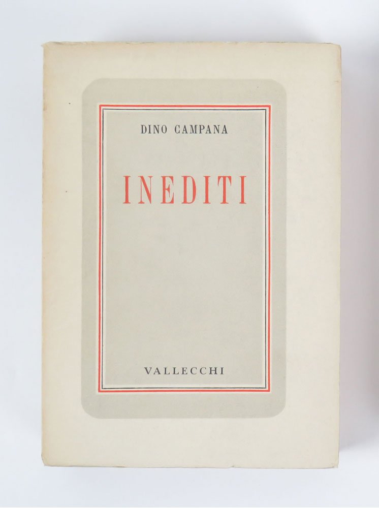 LIBROPrima edizione.Ottimo esemplare (normale minima brunitura ai bordi delle carte).Corposo volume che raccoglie 66 poesie, una prosa e alcuni aforismi. «Alla prima edizione curata dal poeta stesso (”Canti orfici”, Marradi 1914) seguì quella curata da B. Binazzi (”Canti orfici ed altre liriche”, Firenze 1928), notevolmente disinvolta e scorretta. Da questa seconda edizione data il lavorio della critica sia per allargare l’arca dei componimenti già noti, sia per restituire il testo il più conformemente possibile alla volontà dell'autore. Espressione di questa sempre più estesa e accurata attività sono: “Canti orfici”, a cura di E. Falqui, Firenze 1941; “Inediti”, a cura dello stesso, ibid. 1942; “Taccuino”, a cura di F. Matacotta, Fermo 1949» (Asor Rosa, voce DBI).