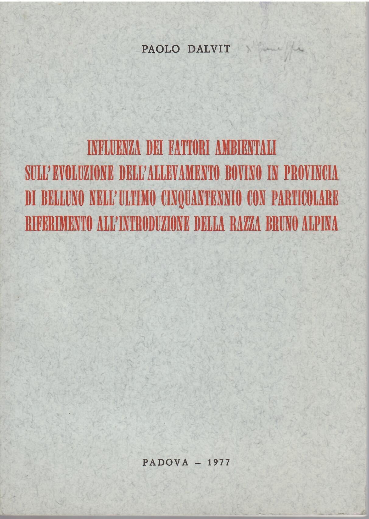 INFLUENZA DEI FATTORI AMBIENTALI SULL'EVOLUZIONE DELL'ALLEVAMENTO BOVINO IN PROVINCIA DI BELLUNO NELL'ULTIMO CINQUATENNIO CON PARTICOLARE RIFERIMENTO ALL'INTRODUZIONE DELLA RAZZA BRUNO ALPINA