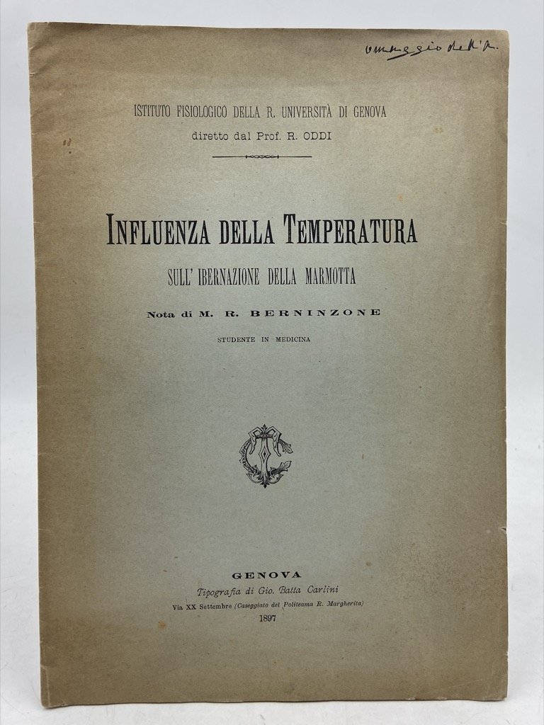 INFLUENZA DELLA TEMPERATURA SULL’IBERNAZIONE DELLA MARMOTTA. Nota di M. R. Berninzone Studente di Medicina.