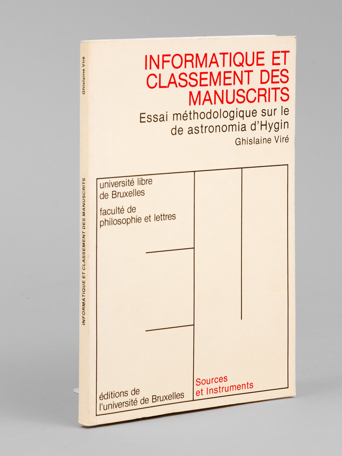 1 vol. in-8 br., Univrsité libre de Bruxelles, Editions de l'Université de Bruxelles, 1986, 100 pp. avec planche dépliante jointe Bon exemplaire bien complet de la planche dépliante