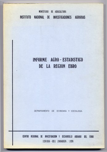 Zaragoza, CRIDA - 03 - INIA, 1976. 4to. mayor; 3 hs., 38 pp. y 76 hs. sin paginar con cuadros estadísticos de producción agrícola. Cubiertas originales.
