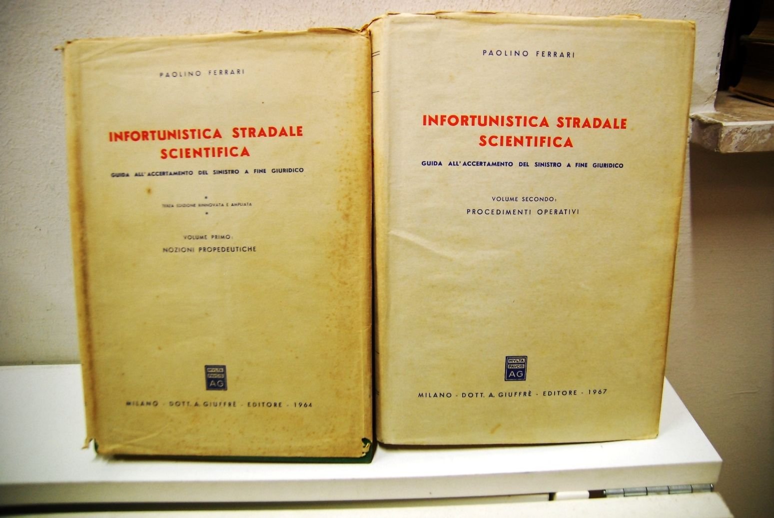 P. Ferrari Infortunistrica stradale scientifica 2 vol.. Giuffrè 1967 Buona Rilegato .