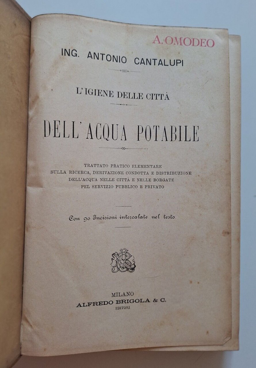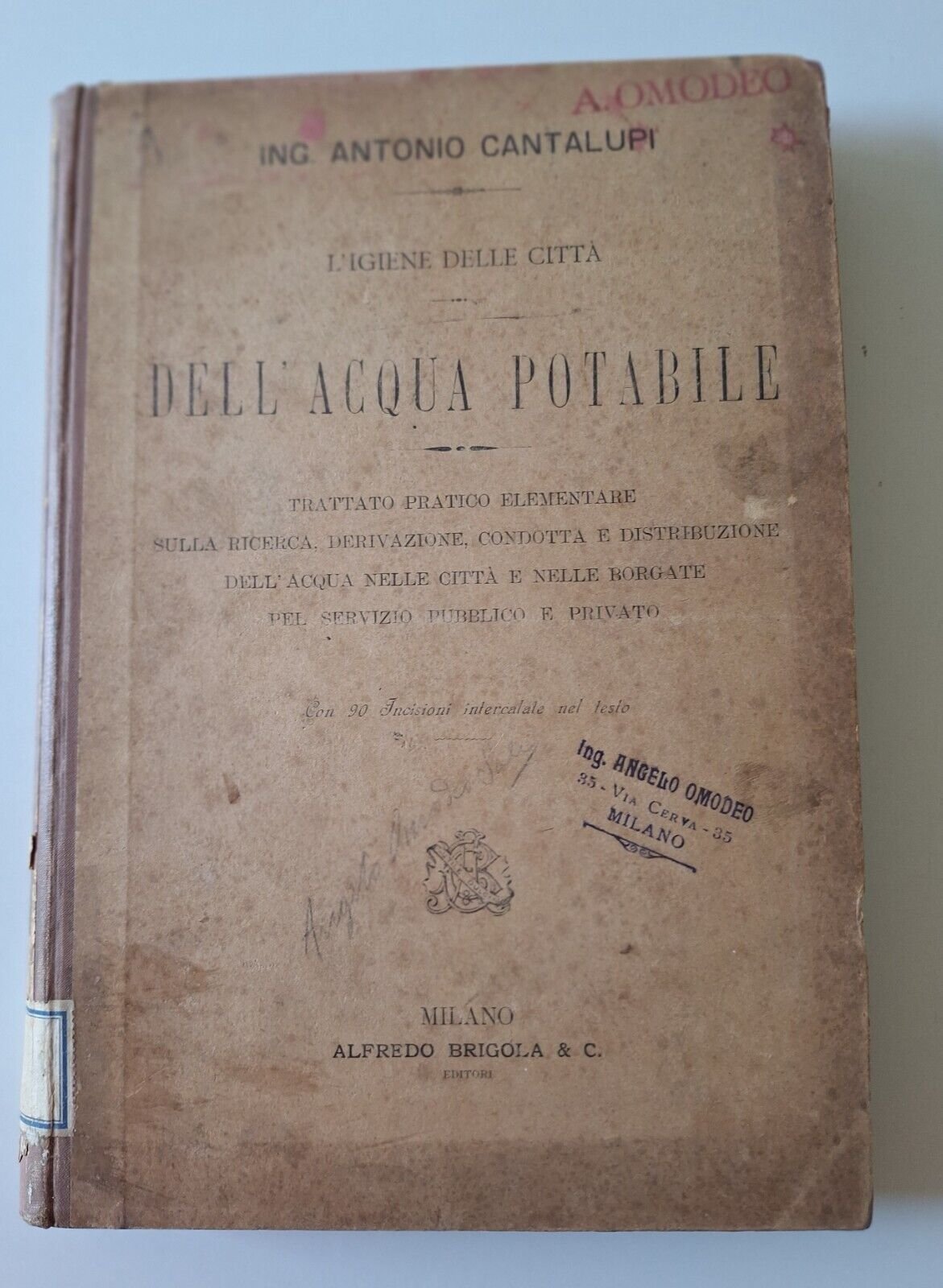 ING. A. CANTALUPI L'IGIENE DELLE CITTA' DELL'ACQUA POTABILE MILANO A. BRIGOLA In 4° , legatura editoriale, copertina illustrata, ill. in b/n.Lievi segni alla copertina. Pagine fresche e pulite.