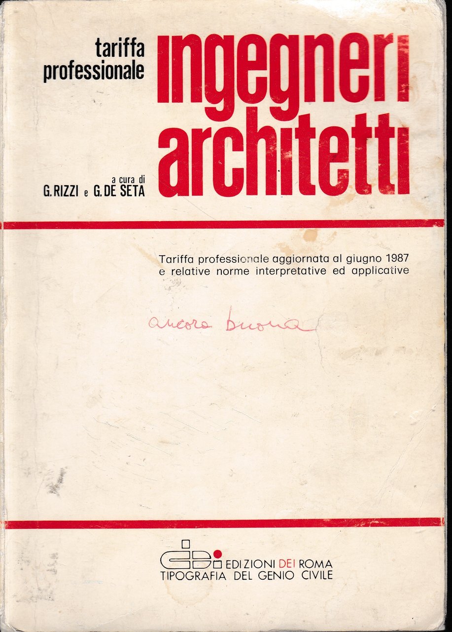 Ingegneri Architetti. Tariffa professionale aggiornata al giugno 1987