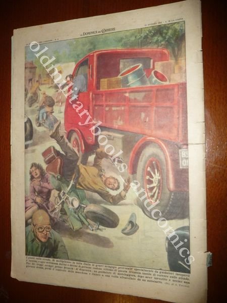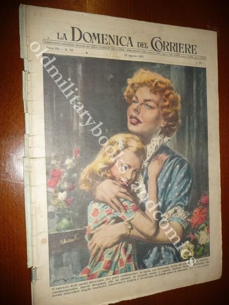DESCRIZIONE: LA DOMENICA DEL CORRIERE 12 agosto 1951 n. 32 In copertina: Ingrid Bergman intrattiene lunghe trattative col primo marito per poter rivedere la figlia. Al retro: Tragedie di guidatori inesperti, incidente mortale a Brescia. CONDIZIONI DELL'OGGETTO: Accettabili/Dicrete, con sovracc. azzurrina, con evidenti strappi. PESO/WEIGHT: 77 g without package