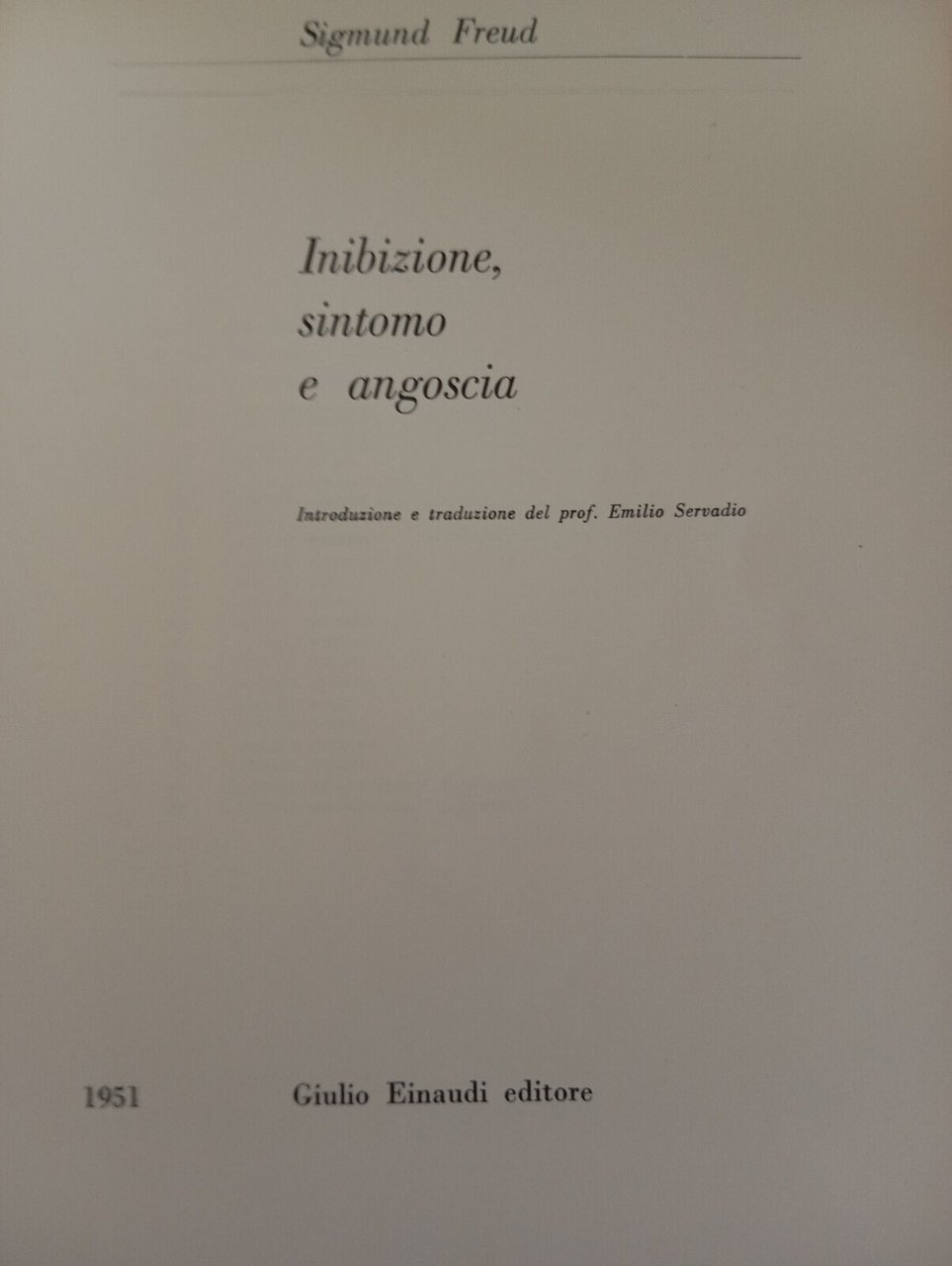 Inibizione, sintomo e angoscia, Sigmund Freud, Einaudi edizione storica 1951