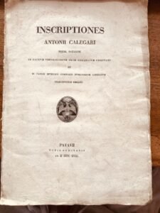 INSCRIPTIONES ANTONII CALEGARI PRESB. PATAVINI IN SACRUM THEOLOGRUM OLIM COLLEGIUM COOPTATI ET IN PATRIO MUNICIPII GYMNASIO HUMANIORUM LITERARUM PRAECEPTORIS EMERITI