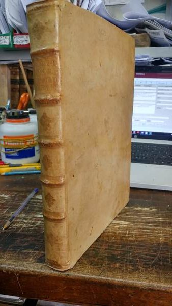 In-4° cm. cm. 20 pp. XVI-418 con le iscrizioni riquadrate da doppo filo nero, con una bella incisione al frontespizioche occupa oltre metà pagina. Legatura in tutta pergamena coeva rigida con titolo, nervature e dorature al dorso. Ottima la conservazione.