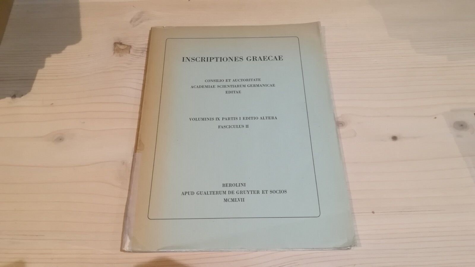Inscriptiones Graecae. Voluminis IX partis I editio altera. Fasciculus II Inscriptiones Graeciae septentrionalis voluminibus VII et VIII non comprehensae. Pars I. Inscriptionis Phocidis Locridis Aetoliae Acarnaniae Insularum Maris Ionii. Editio altera. Fasciculus II. Inscriptiones Acarnaniae. Consilio et auctoritate academiae scientiarum Germanicae editae. Berolini apud Georgium Reimer 1957 Libro in buone condizioni, minimi segni del tempo: qualche mancanza al dorso. Non esitate a contattarci per altre foto o richieste. Saremo lieti di soddisfare ogni vostra esigenza.