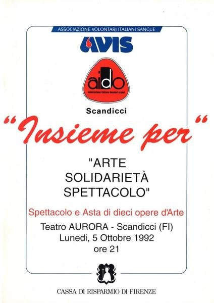 Insieme per arte, solidarietà, spettacolo, edizione 1992, pp. 15, formato 15 x 21.<BR>Copertina morbida di colore bianco con titoli in nero e arancione la piatto anteriore. All'interno numerose tavole illustrate in b/n. <BR>Ottime condizioni.