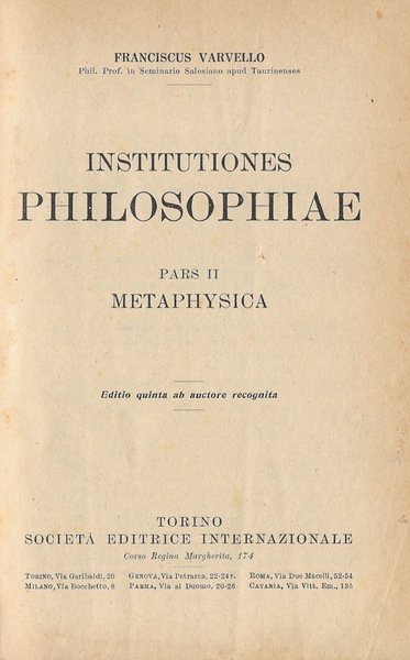 Opera incompleta, volume rilegato in mezza tela, coperta muta e con segni d'usura e da fattore tempo, tagli imbruniti ed irregolari, pagine parimenti imbrunite, alcune con più accentuata fioritura, testo fruibile, con note a piè di pagina, quinta edizione rivista dall'autore, numero pagine 373; da segnalare: presenti segni, sottolineature ed appunti a matita riconducibili ad attività di studio