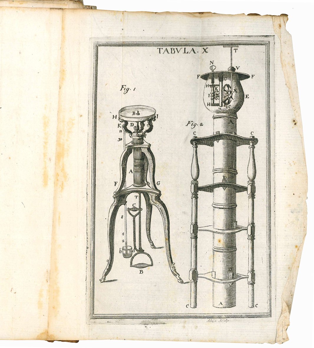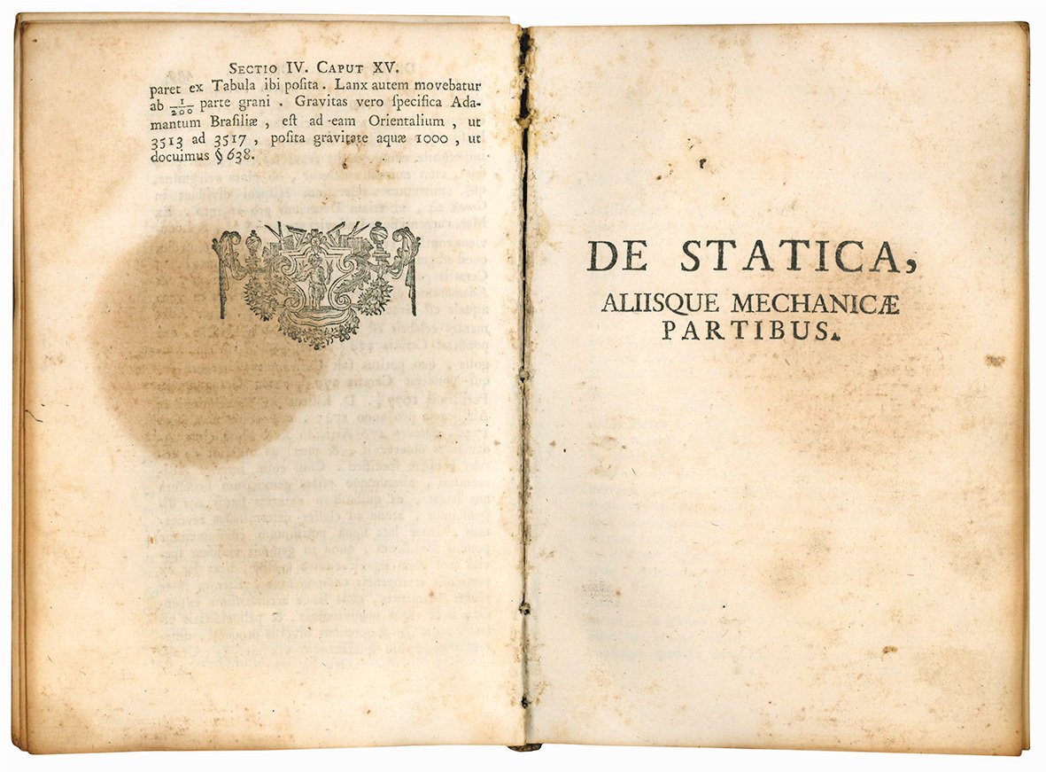 Due parti rilegate insieme in un volume in 8vo (mm 187x129); pp. [16], 439, [1], [2] c. di tav. fuori testo, XIII c. di tav. ripiegate fuori testo; [3], 440-727, [1] p., XIV-XXX c. di tav. ripiegate fuori testo. Sono presenti due volte le cc. del fascicolo Zz. Mancano le carte preliminari, le pp. 1-222 e la c. di tav. ripiegata XX. Aloni diffusi, lievi fioriture al margine di alcune carte, segni di tarlo ad alcune tavole. Cartonato coevo, dorso mancante, piatti staccati. Tagli spruzzati. Carte e alcuni fascicoli un po' sciolti.